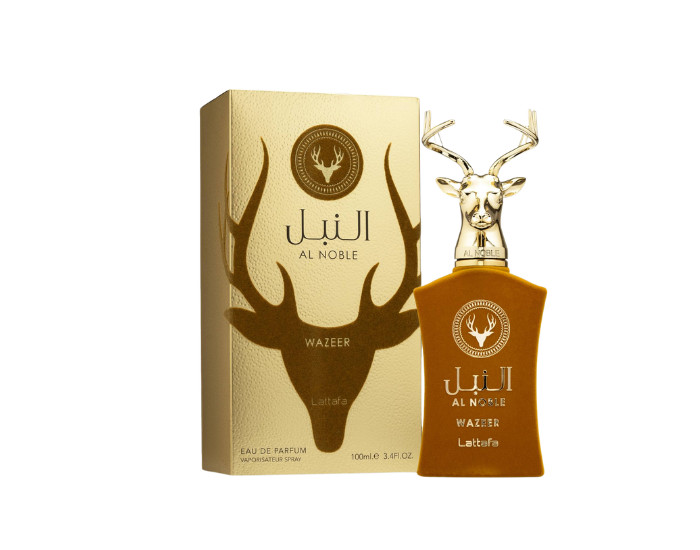 Wazeer de Lattafa Perfumes es una fragancia de la familia olfativa para Hombres y Mujeres. Las Notas de Salida son menta, naranja, enebro de Virginia y bergamota; las Notas de Corazón son chocolate, caramelo, pera, iris y frambuesa; las Notas de Fondo son ámbar, vainilla, cedro, sándalo, almizcle y vetiver.